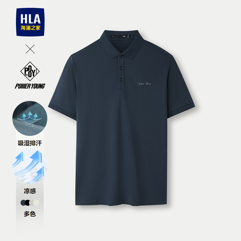 已选:HLA海澜之家POWER YOUNG凉感POLO衫25春夏新吸湿排汗翻领短袖男HNTPW2J003A