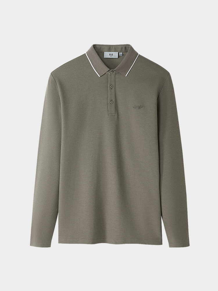HLA海澜之家轻商务时尚系列长袖polo24春季新翻领绅士透气长袖男HNTPW3W079A