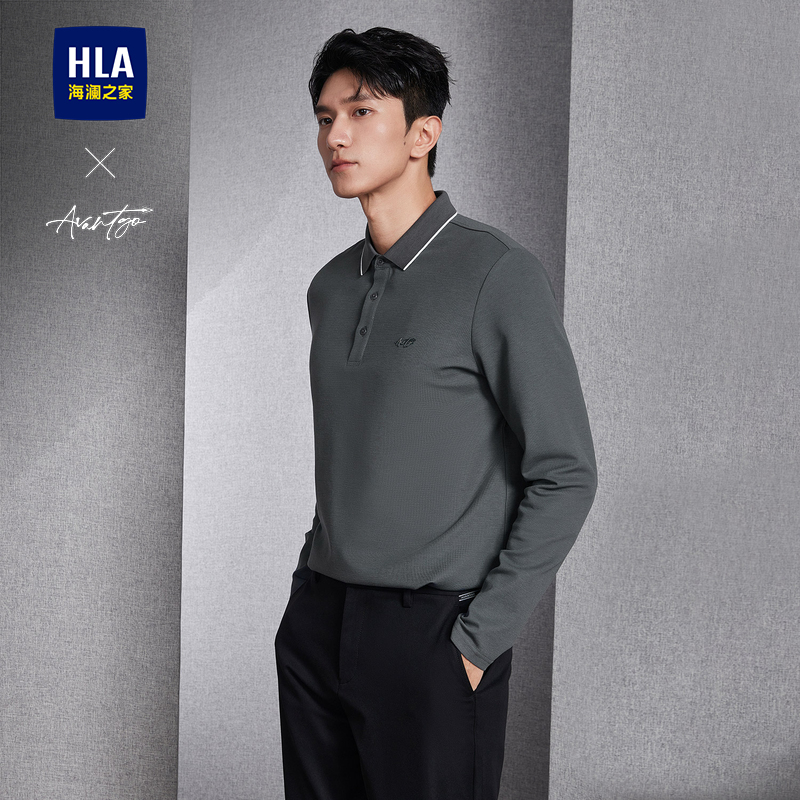 已选:HLA海澜之家轻商务时尚系列长袖polo24春季新翻领绅士透气长袖男HNTPW3W079A