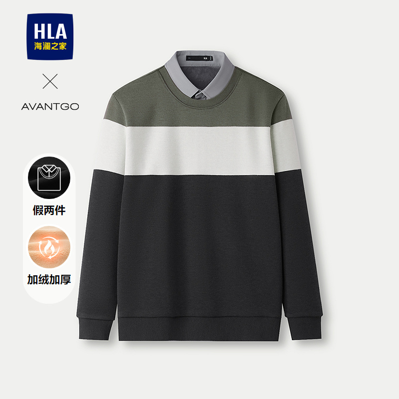 已选:HLA海澜之家轻商务双领针织衫25冬新假两件加绒加厚远红外长袖男HNTVW4J001A