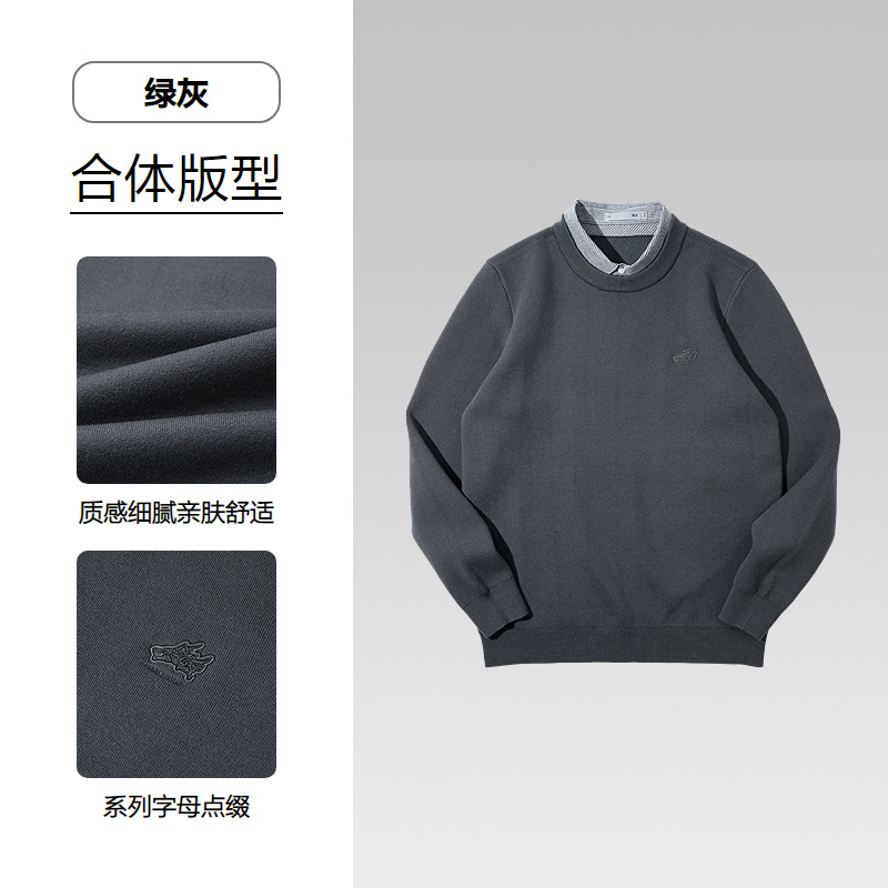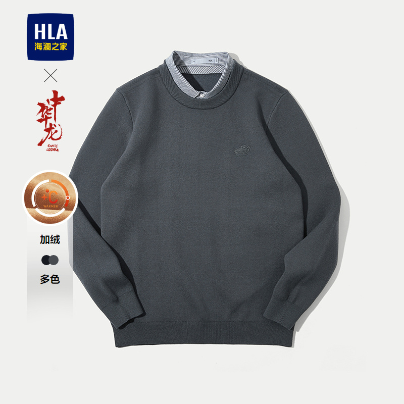 已选:HLA海澜之家中华龙系列长袖针织衫2025秋冬新款加绒假两件上衣男HNTVW4J006A