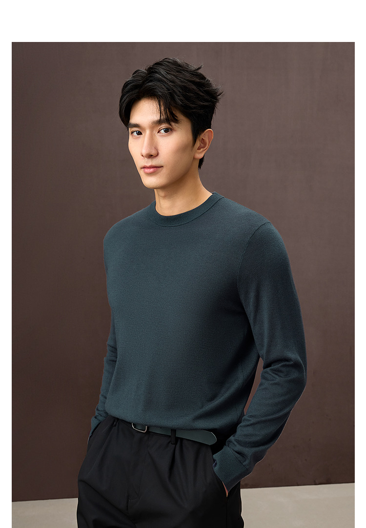 - HLA海澜之家轻商务经典系列长袖针织衫25春夏新含羊毛保暖上衣男HNZAW3J001A