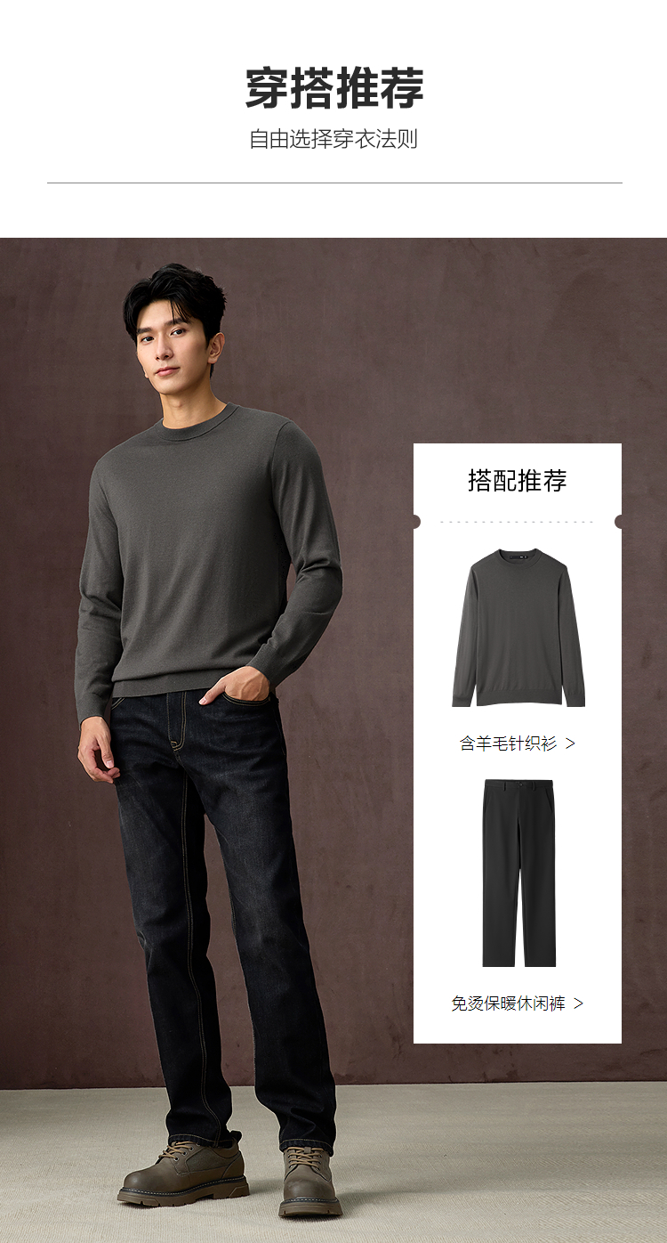 - 已选:HLA海澜之家轻商务经典系列长袖针织衫25春夏新含羊毛保暖上衣男HNZAW3J001A