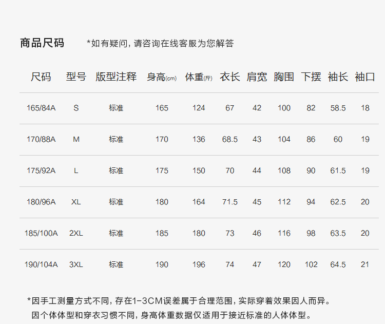 尺码颜色