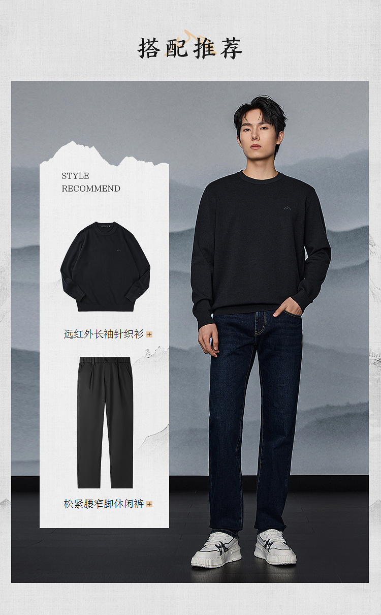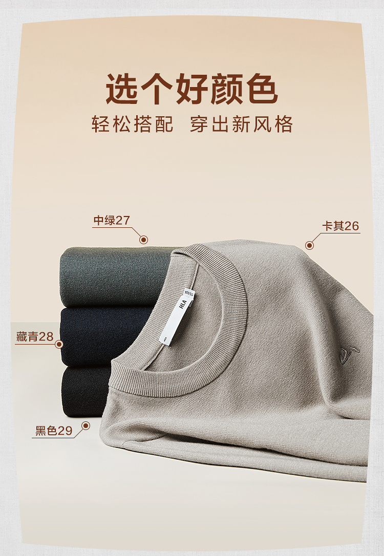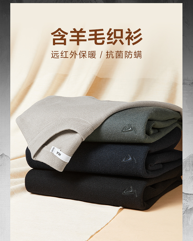 HLA海澜之家山不在高系列长袖针织衫25春秋新款远红外含羊毛衣男HNZAW3J011A