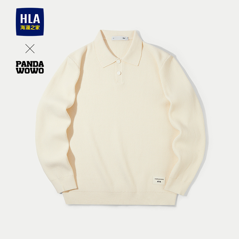 已选:HLA海澜之家panda wowo熊猫翻领长袖针织衫25秋季新款纯色上衣男HNZAW3J048A
