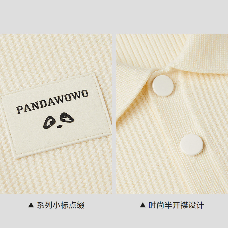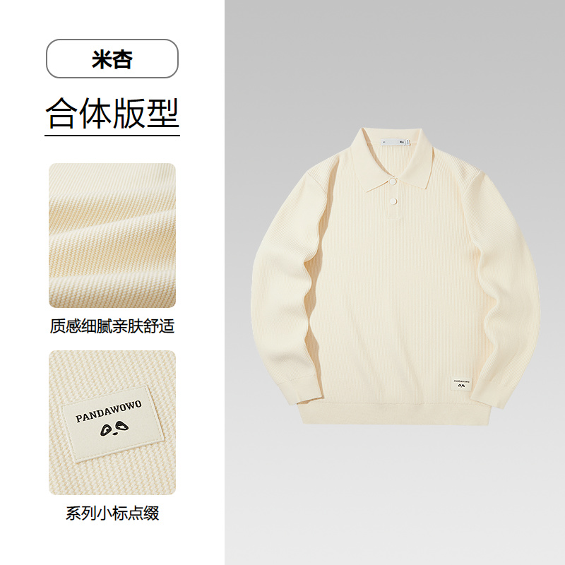 HLA海澜之家panda wowo熊猫翻领长袖针织衫25秋季新款纯色上衣男HNZAW3J048A