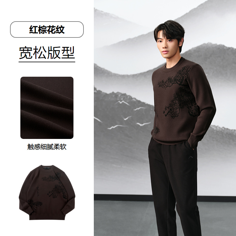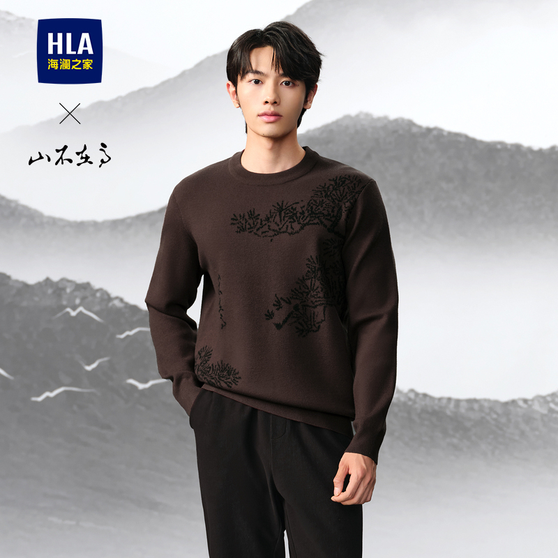 已选:HLA海澜之家山不在高系列针织衫24春秋新满身印花保暖圆领毛衣男HNZAW3W034A
