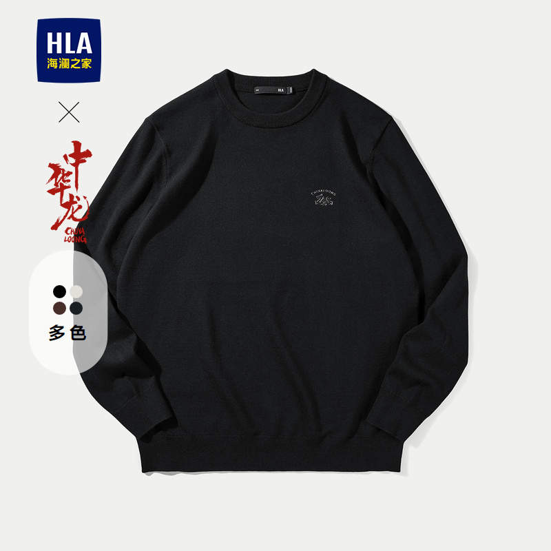 HLA/海澜之家中华龙系列针织衫24秋新远红外高周波印绣花毛衣男
