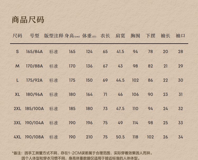 尺码颜色