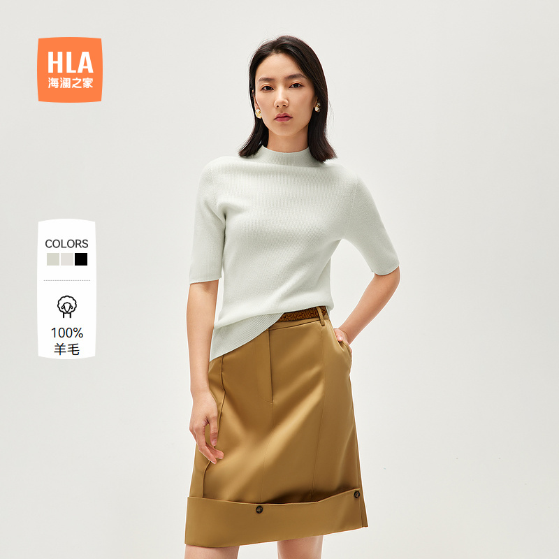 HLA海澜之家纯羊毛针织衫24秋季新经典半高领优雅气质毛衣女装HNZBW3W300A