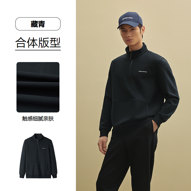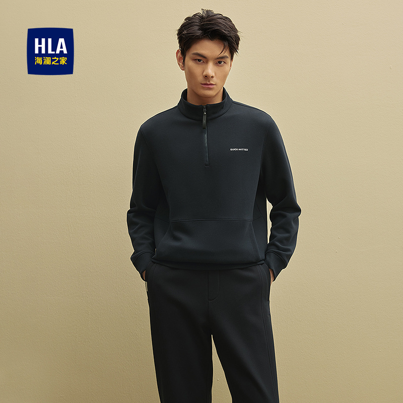 已选:HLA海澜之家撞色字母休闲上衣25秋季新半高拉链弹力休闲风长袖男HNZPD3J033A