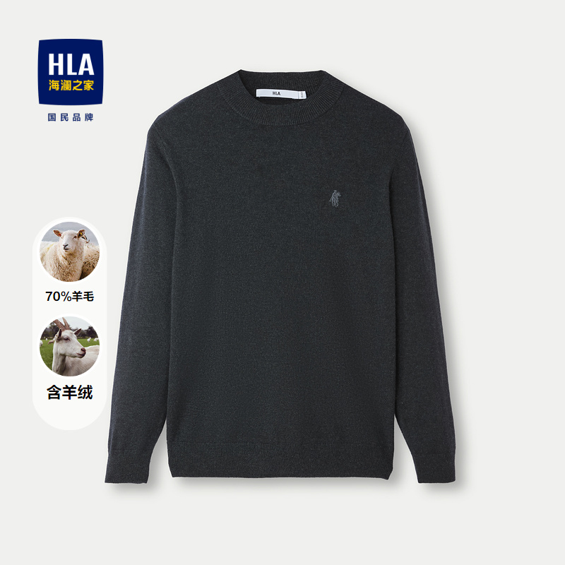 已选:HLA海澜之家羊绒衫2024秋冬新款半高领套头修身提花含羊毛毛衣男HNZRJ4W003A
