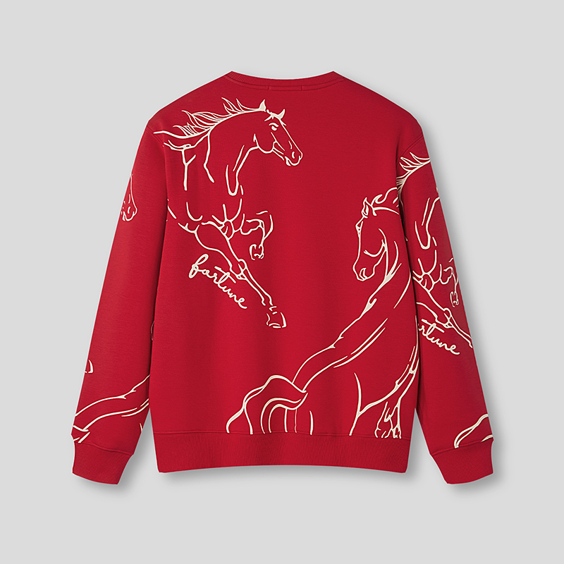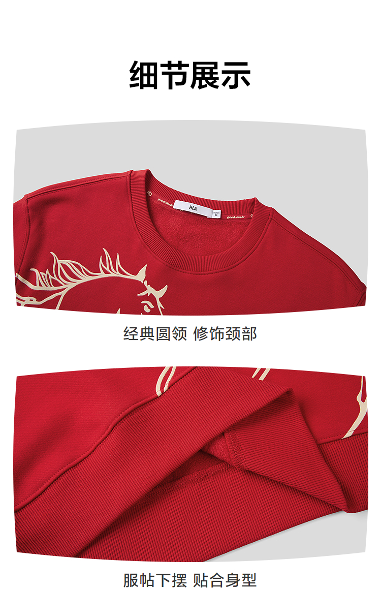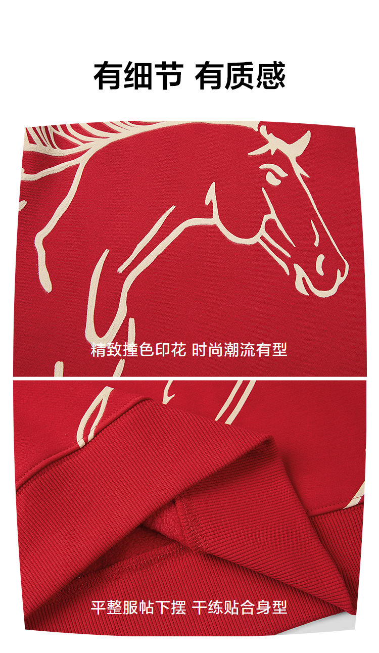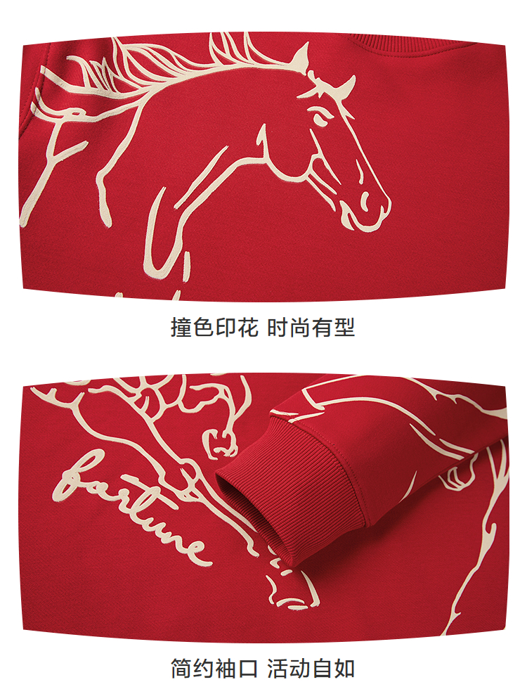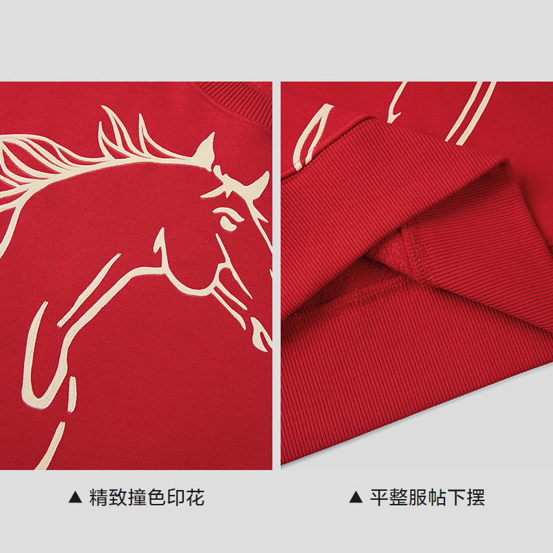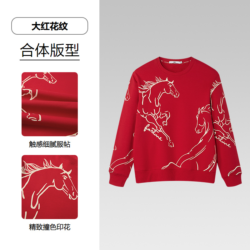 HLA海澜之家马年贺岁系列卫衣2026春夏新加绒保暖满身印花长袖男HNZWD1F002A