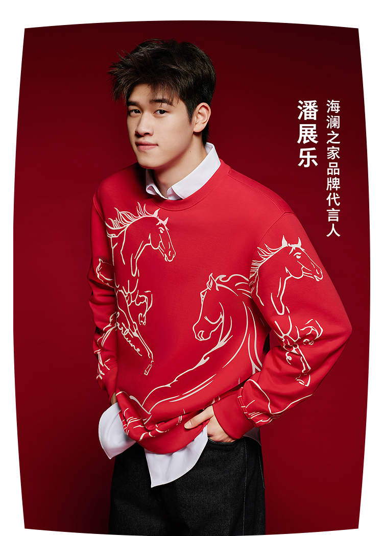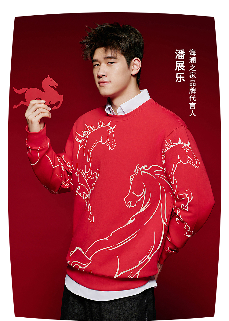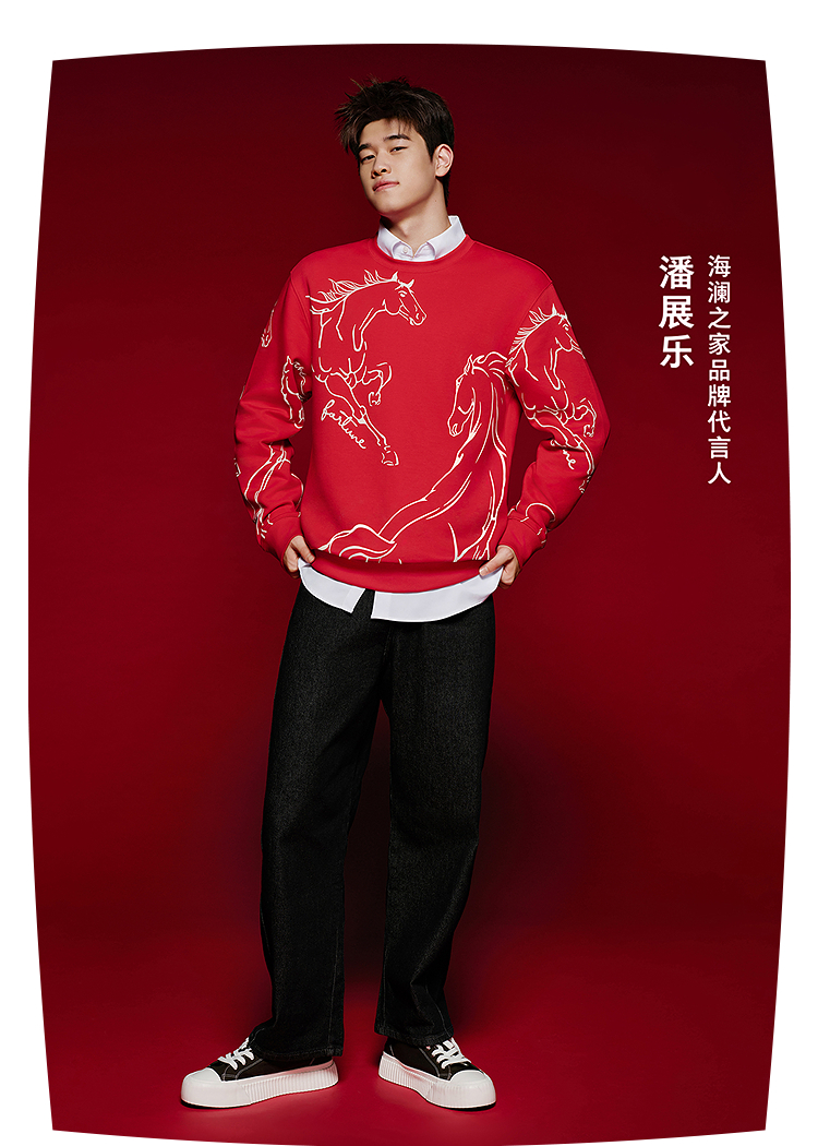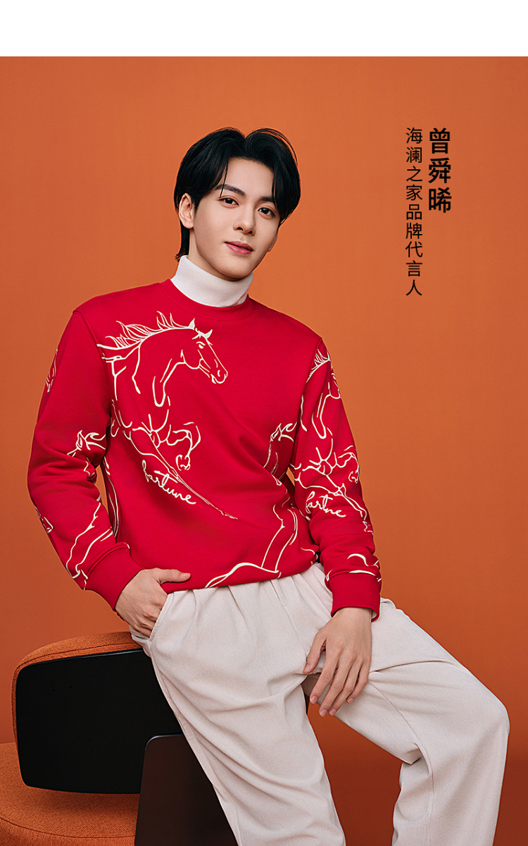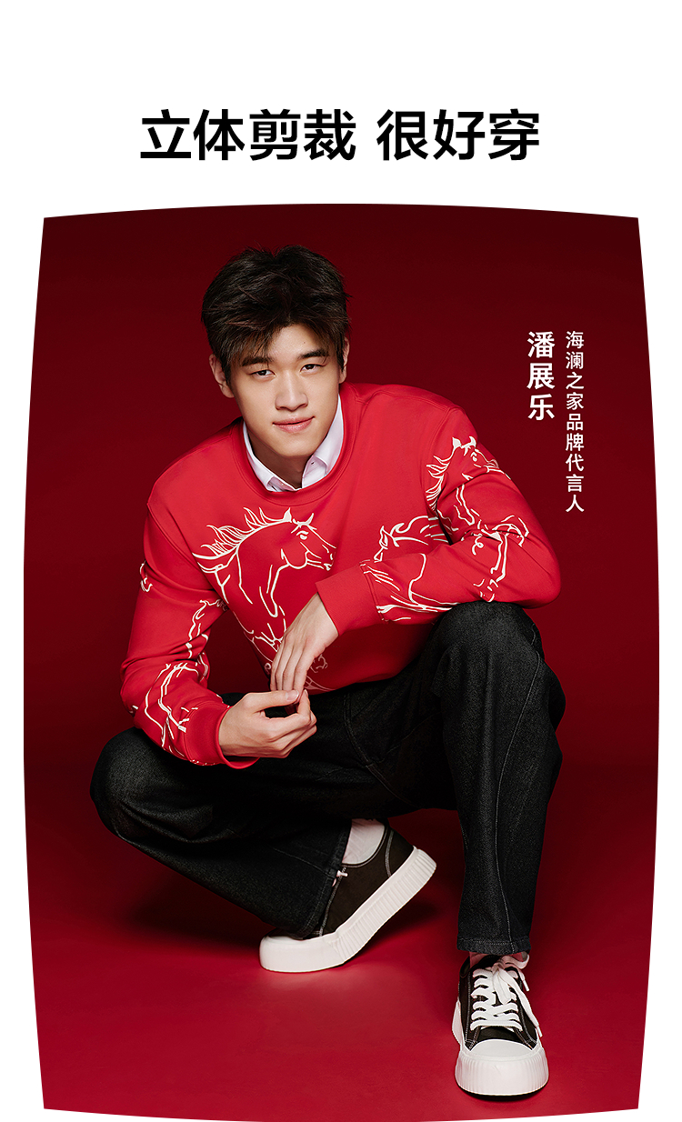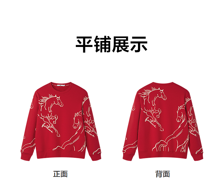 HLA海澜之家马年贺岁系列卫衣2026春夏新加绒保暖满身印花长袖男HNZWD1F002A