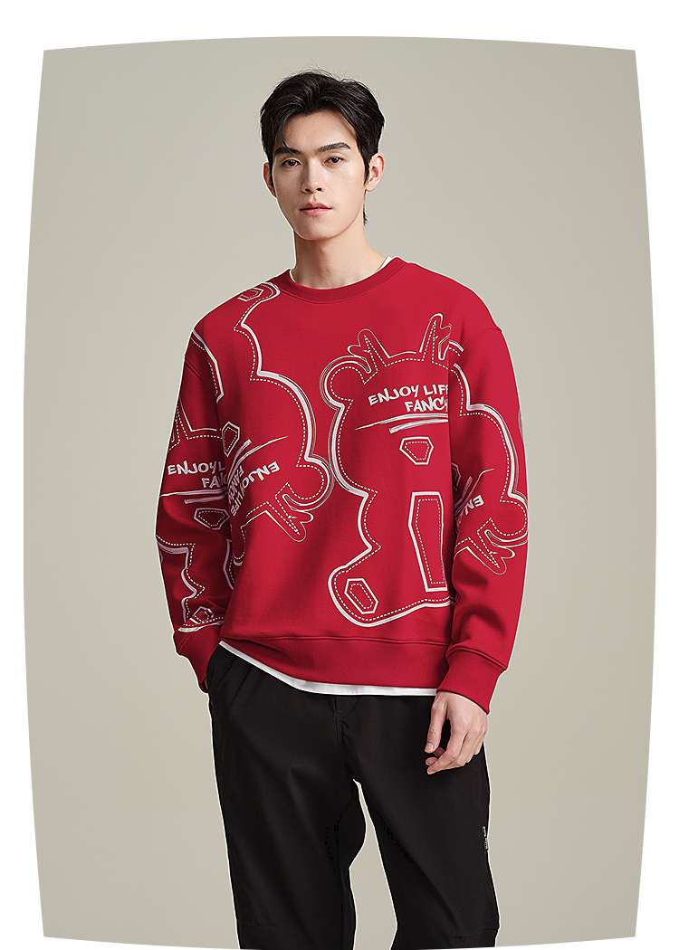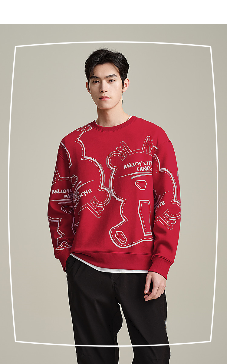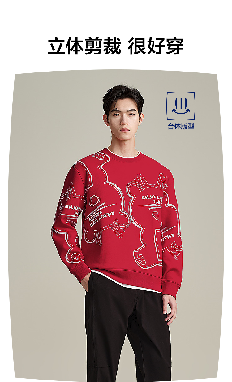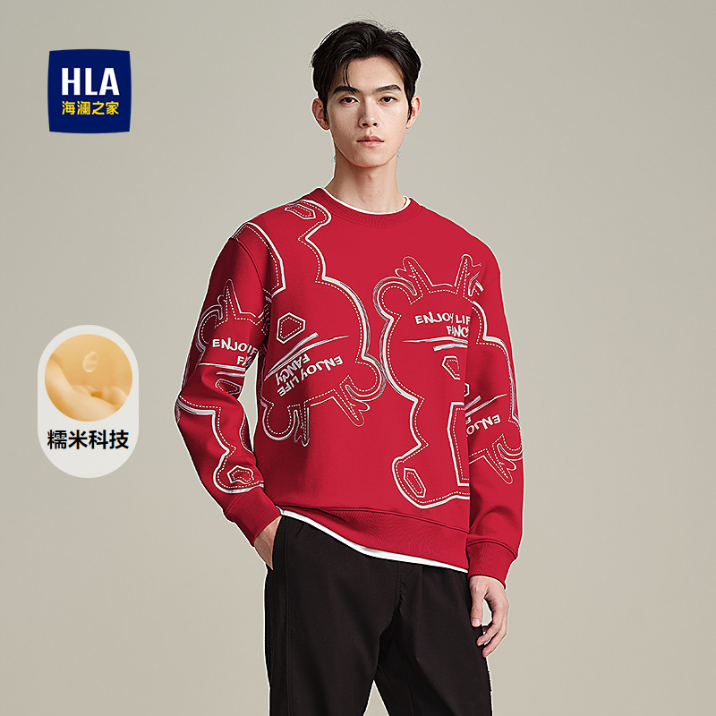 HLA海澜之家蛇年贺岁系列卫衣25春秋新款圆领微弹保温透气长袖男HNZWD1J001A