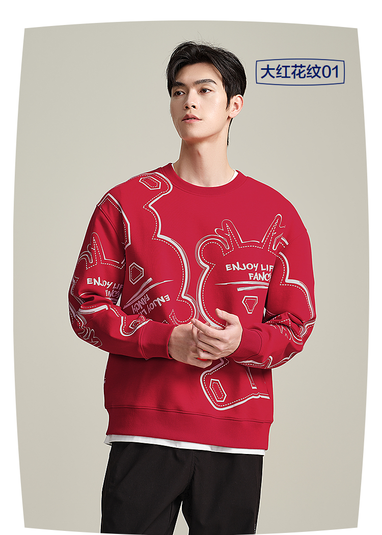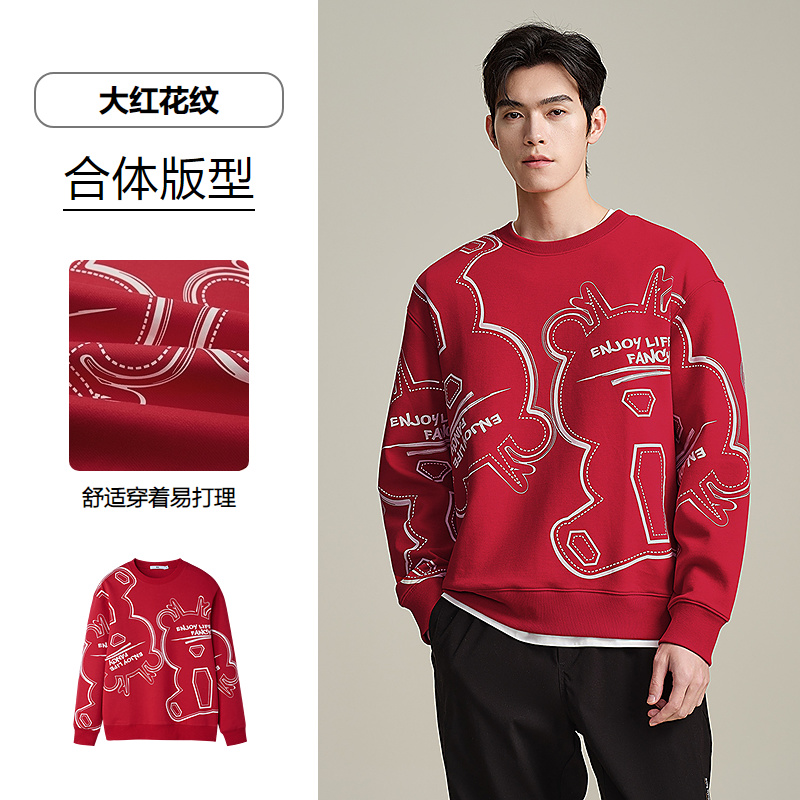 已选:HLA海澜之家蛇年贺岁系列卫衣25春秋新款圆领微弹保温透气长袖男HNZWD1J001A