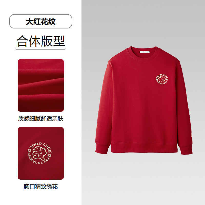 已选:HLA海澜之家潘展乐同款蛇年贺岁卫衣25春秋新圆领绣花喜庆上衣男HNZWD1J024A