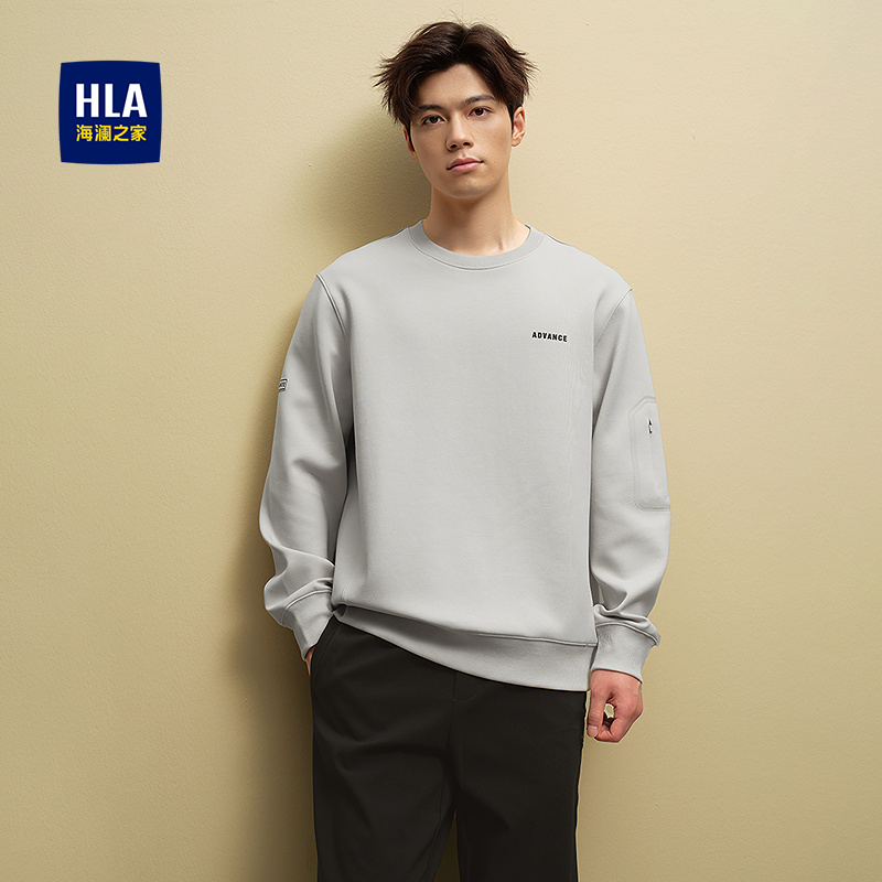 已选:HLA海澜之家休闲卫衣2025秋季新款袖侧口袋字母印花圆领上衣男HNZWD3J109A