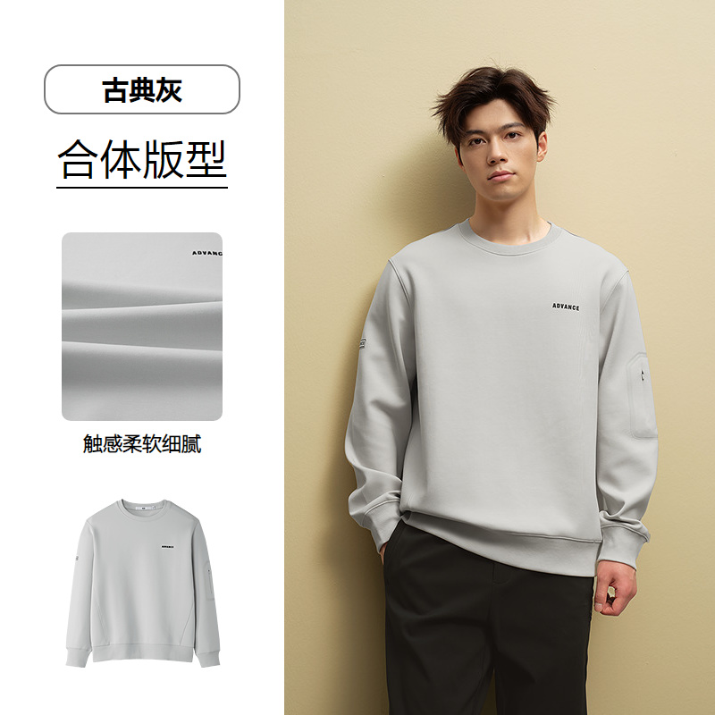 HLA海澜之家休闲卫衣2025秋季新款袖侧口袋字母印花圆领上衣男HNZWD3J109A