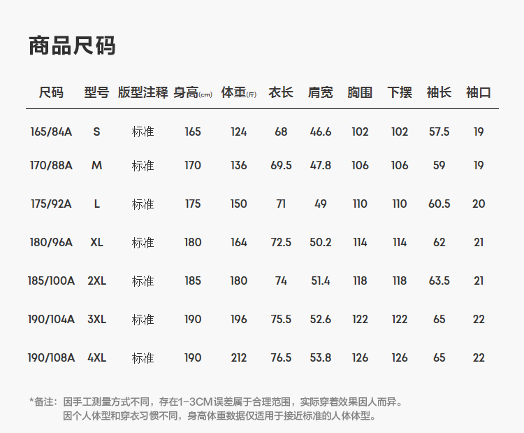 尺码颜色