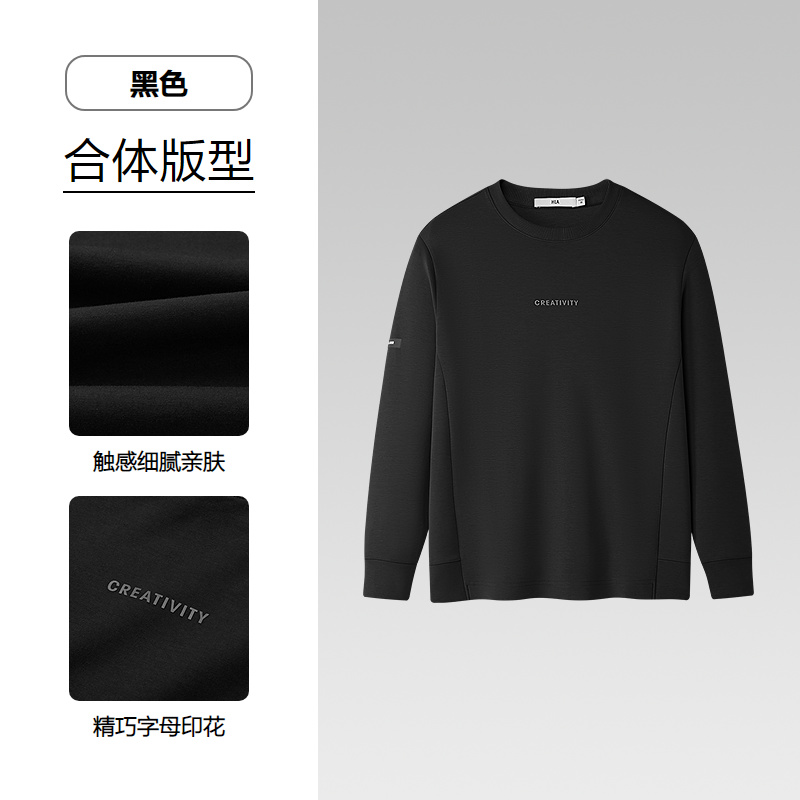 HLA海澜之家含莫代尔卫衣25新字母印花圆领针织休闲风柔软长袖男HNZWD3J110A