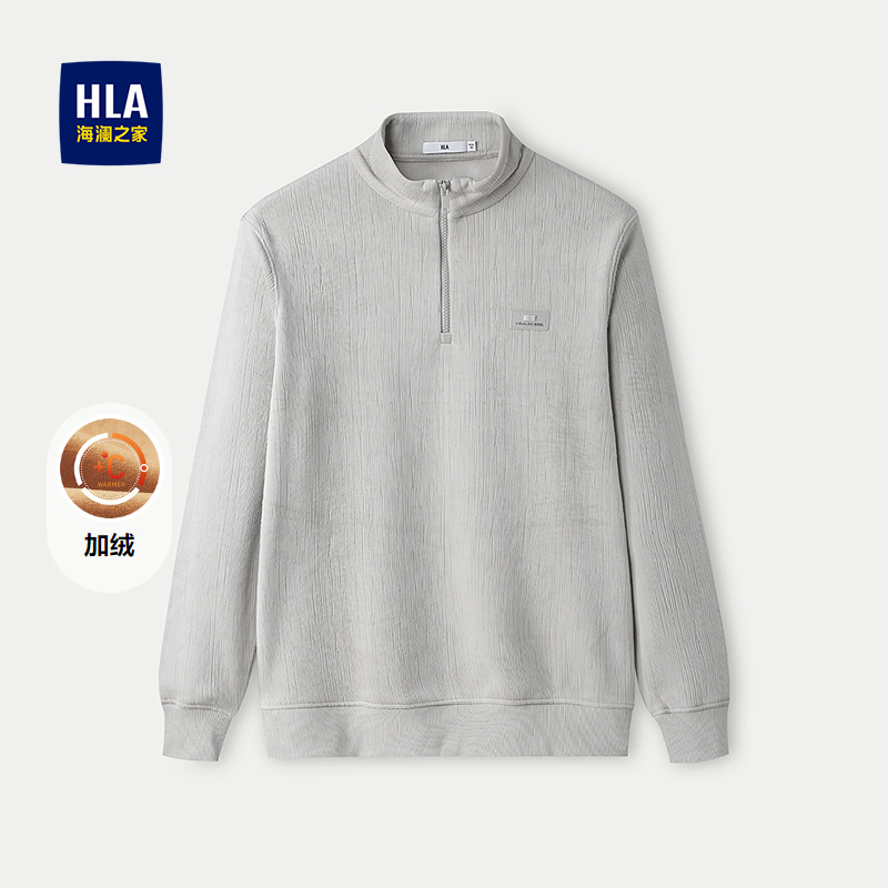 已选:HLA海澜之家保暖卫衣2025秋冬新款仿树皮纹理微弹修身加绒上衣男HNZWD4J224A