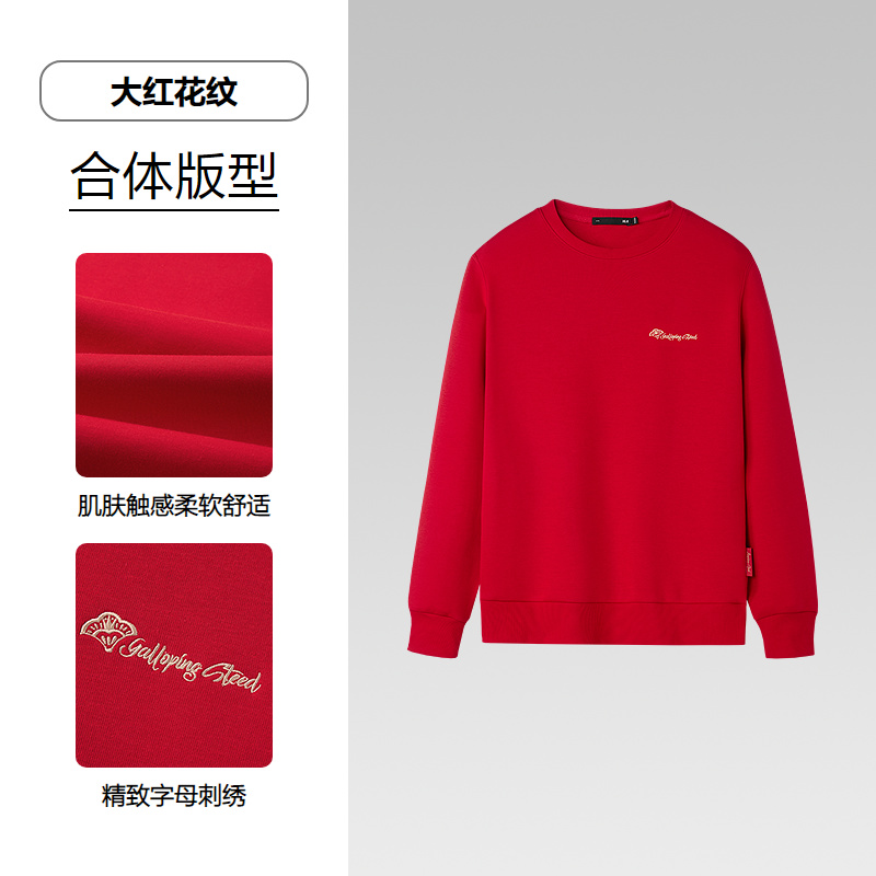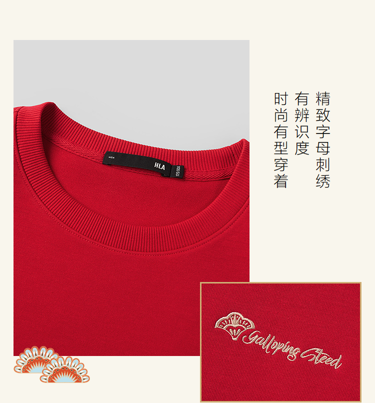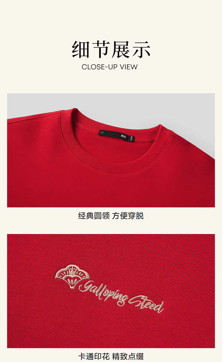 已选:HLA海澜之家马年贺岁系列卫衣26春夏新款刺绣柔软圆领套头上衣男HNZWW1F021A