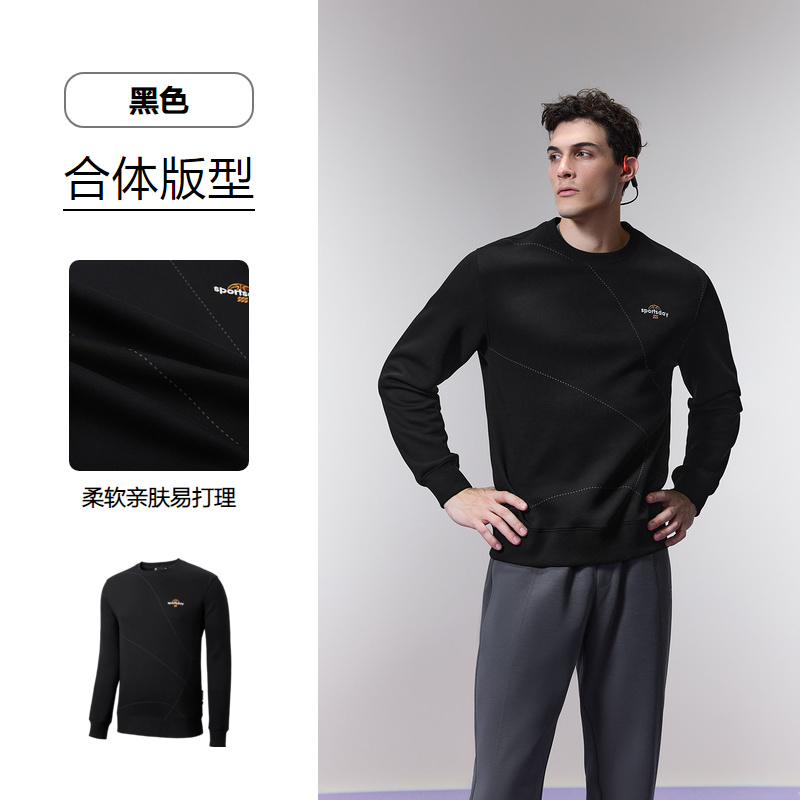 HLA海澜之家sportsday马术运动卫衣24春秋新圆领珠地柔软上衣男HNZWW3W084A