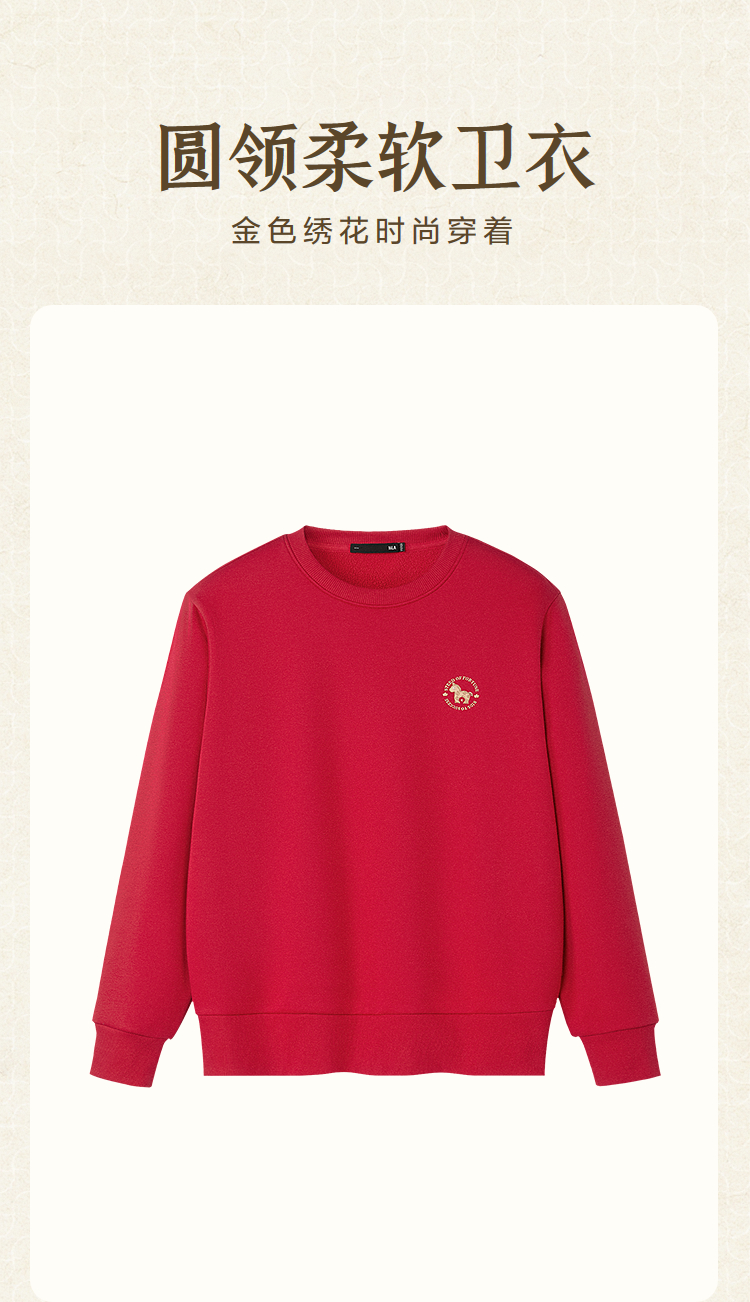 - HLA海澜之家马年贺岁系列卫衣25秋冬新款圆领加绒柔软绣花上衣男HNZWW4J110A