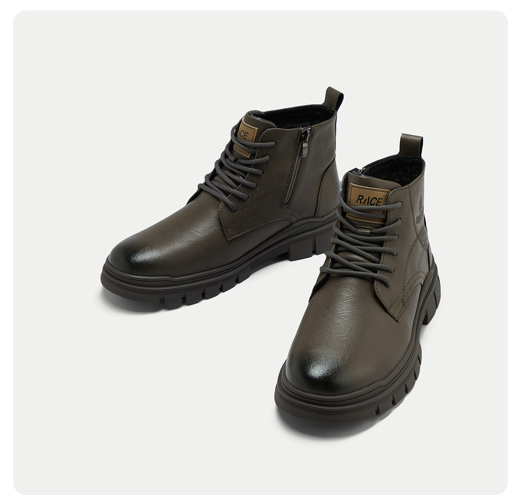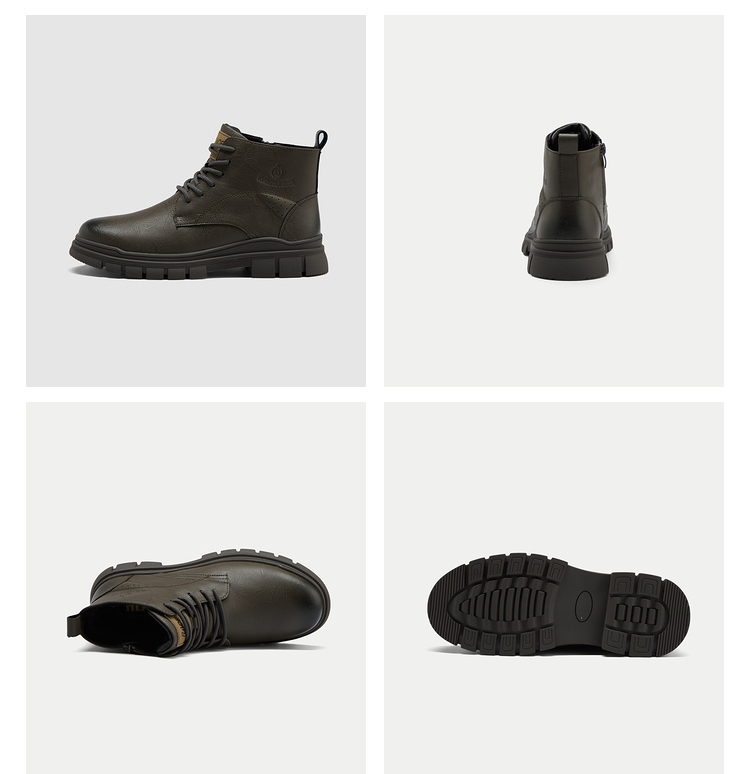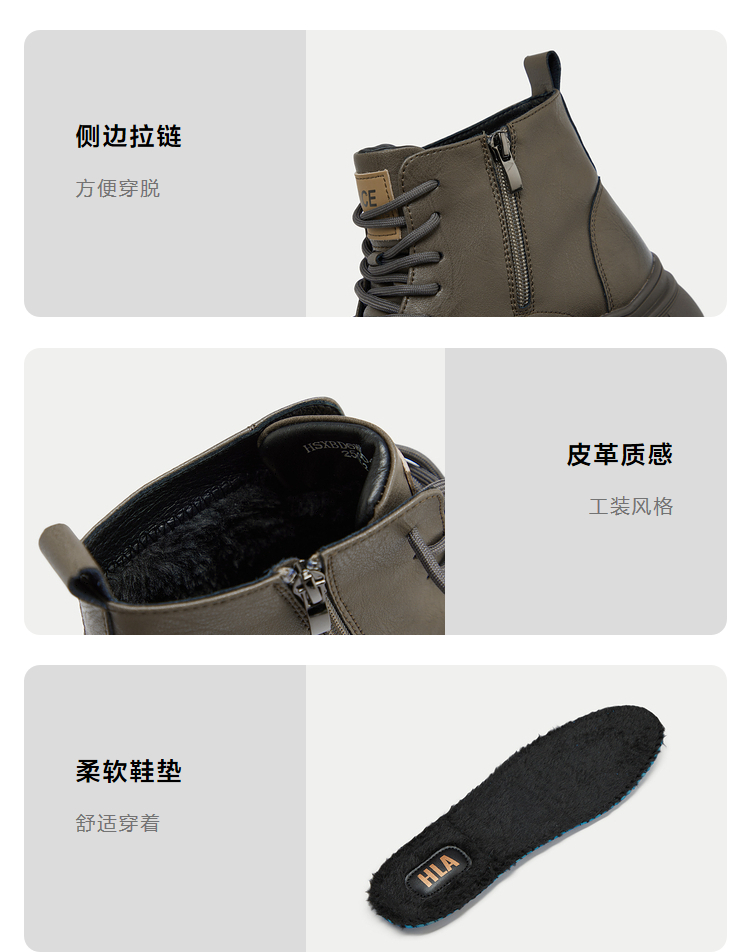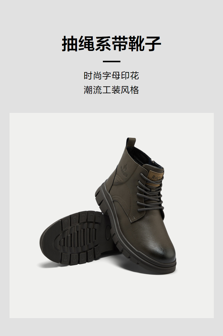 已选:HLA海澜之家抽绳系带靴子24新字母印花圆头橡胶鞋底工装风鞋子男HSXBD6W004A
