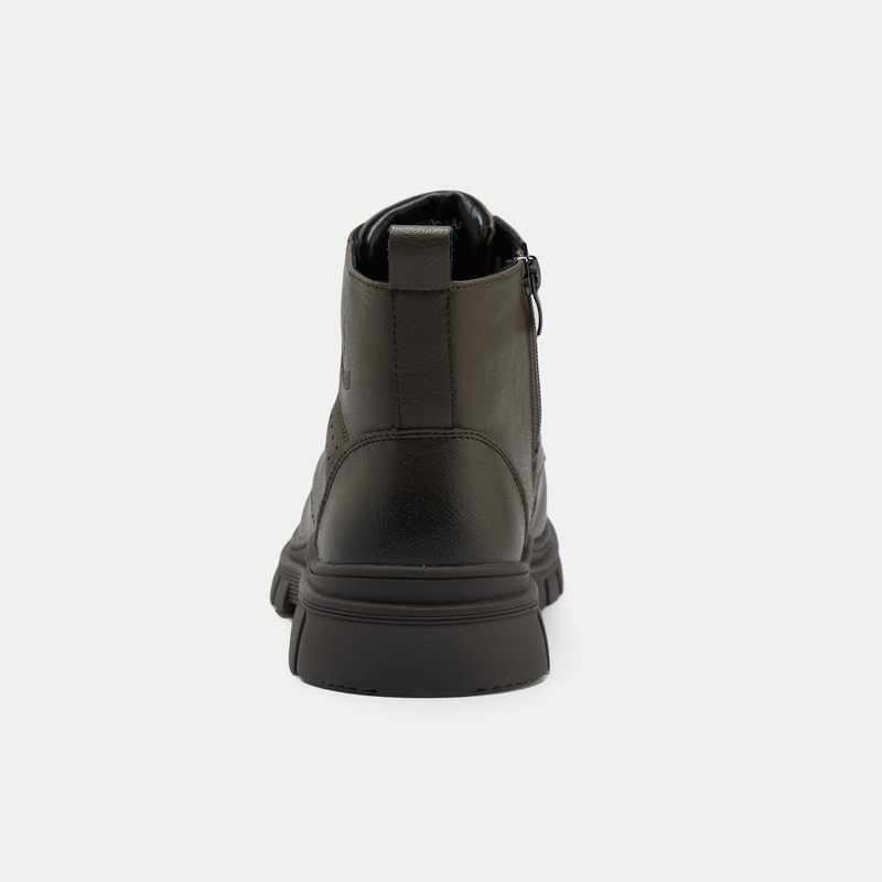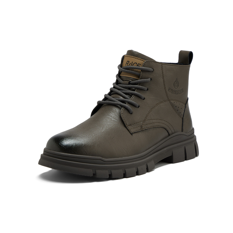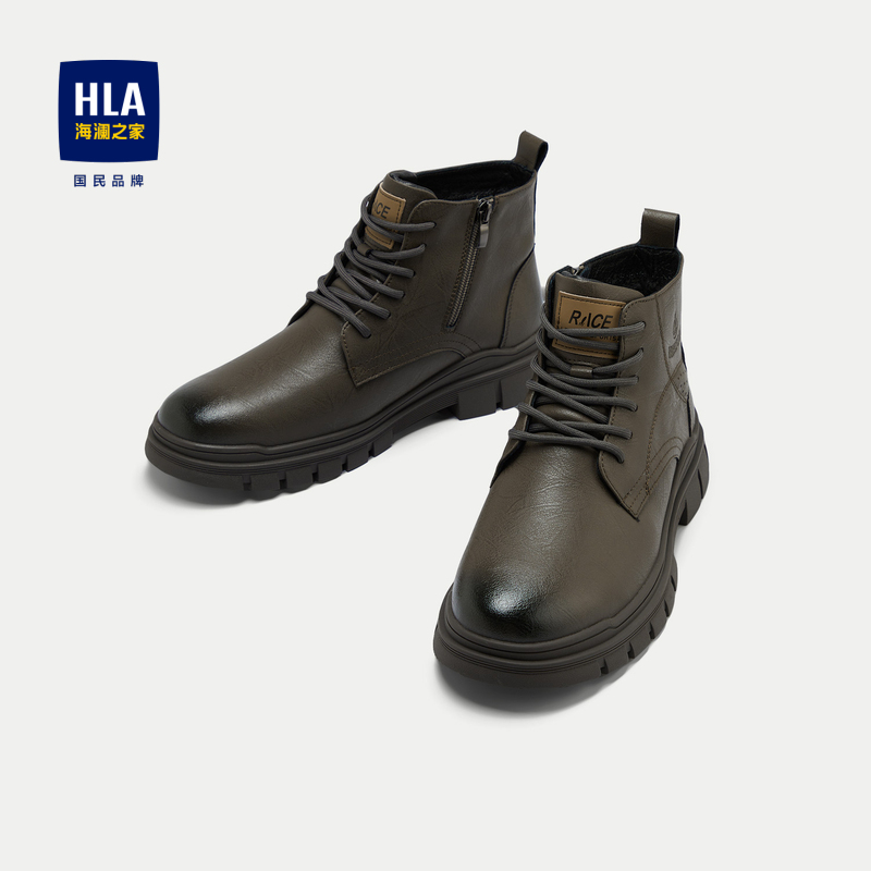 HLA海澜之家抽绳系带靴子24新字母印花圆头橡胶鞋底工装风鞋子男HSXBD6W004A