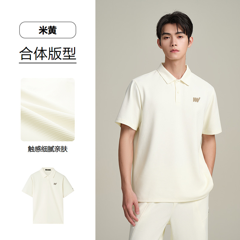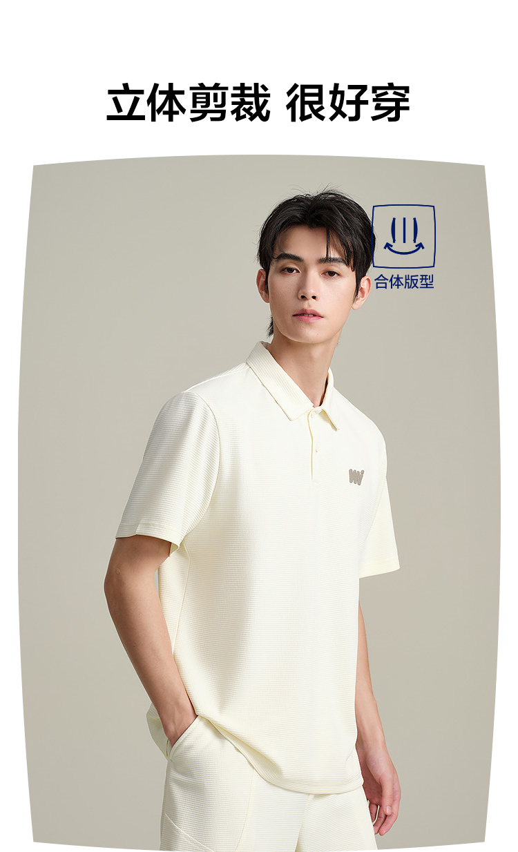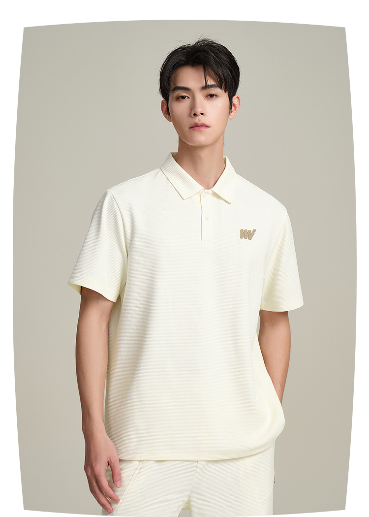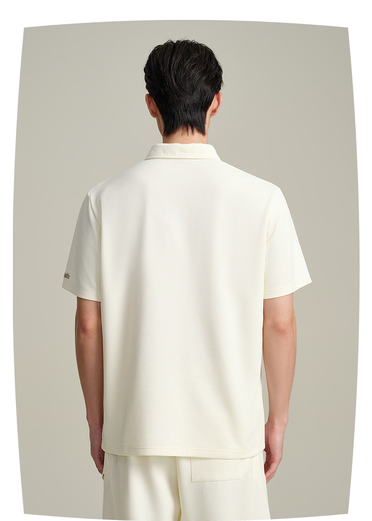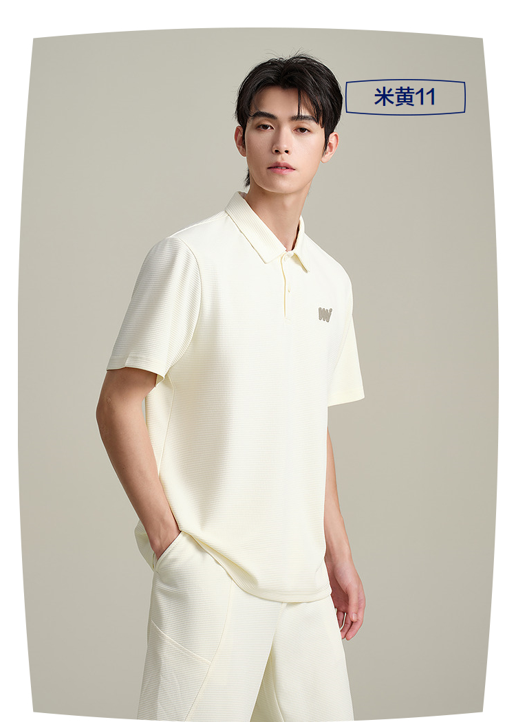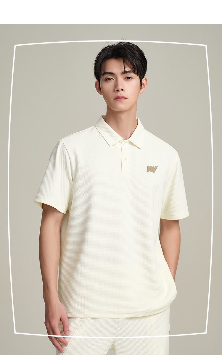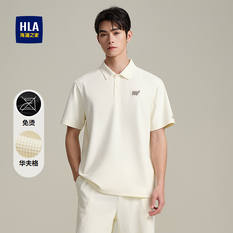 HLA海澜之家华夫格休闲套装上衣25春夏新翻领刺绣透气时尚Polo男HTABD2J011A