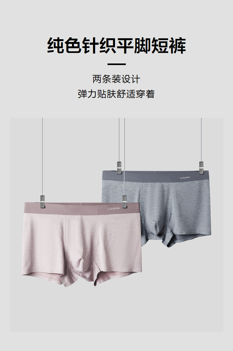 HLA海澜之家顺滑针织平脚短裤26新弹力字母腰筋透气两条装内裤男HUKAJ5F017A