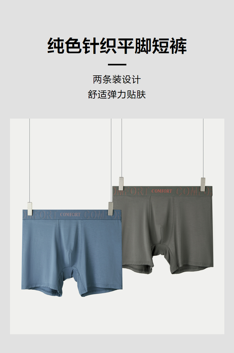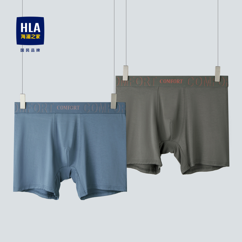 已选:HLA海澜之家纯色针织平脚短裤24新裤腿加长舒适透气两条装内裤男HUKAJ6W063A