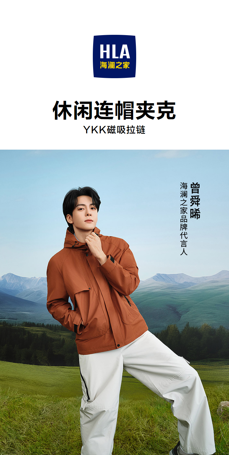已选:HLA海澜之家曾舜晞同款YKK磁吸拉链夹克26春夏新休闲连帽外套男HWJAD1F039A