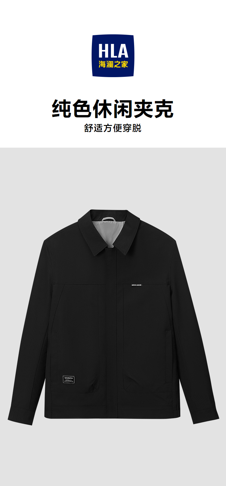 已选:HLA海澜之家翻领夹克26春夏新款拉链门襟纯色休闲挺括时尚外套男HWJAD1F063A