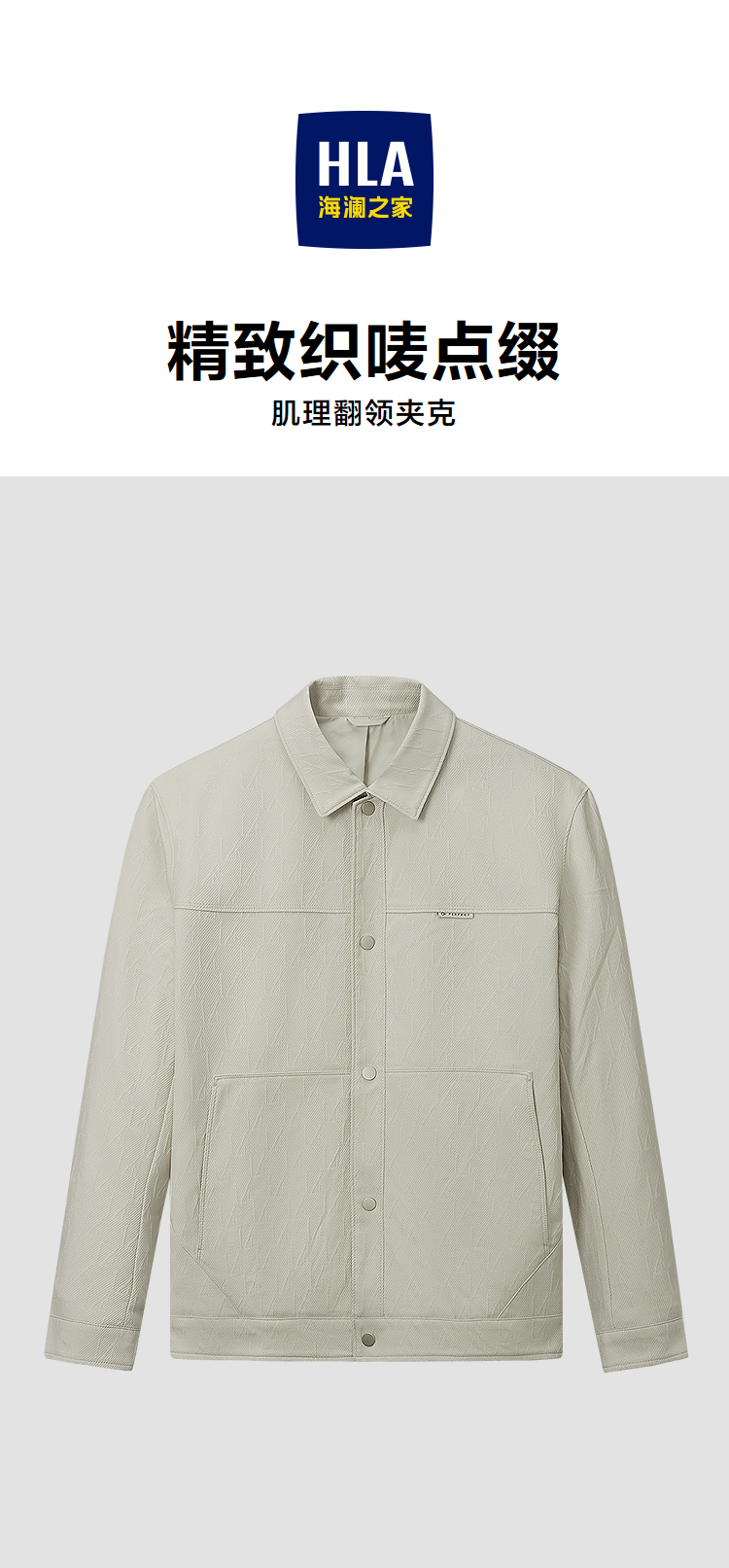 HLA海澜之家休闲夹克2026春夏新款经典翻领精致织唛点缀外套男HWJAD1F115A