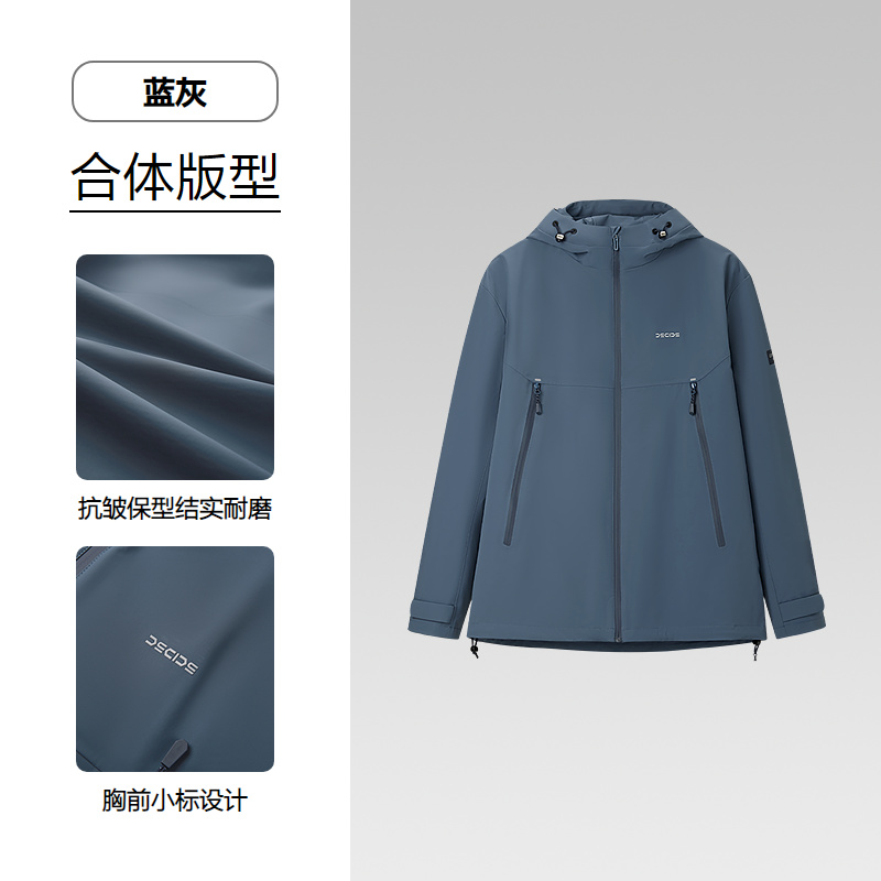 HLA海澜之家舒适连帽夹克2025春秋新款压胶工艺微弹时尚外套男HWJAD1J099A
