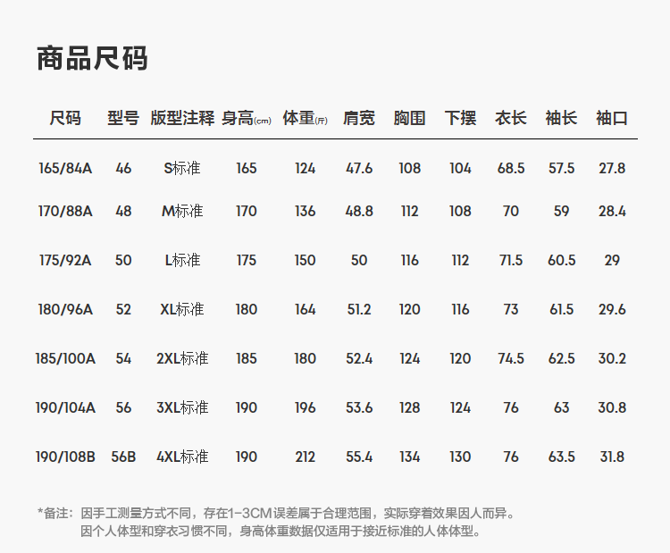 尺码颜色