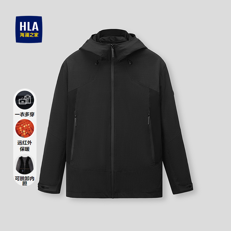已选:HLA海澜之家休闲夹克2025秋冬新款连帽格子远红外一衣多穿外套男HWJAD4J195A