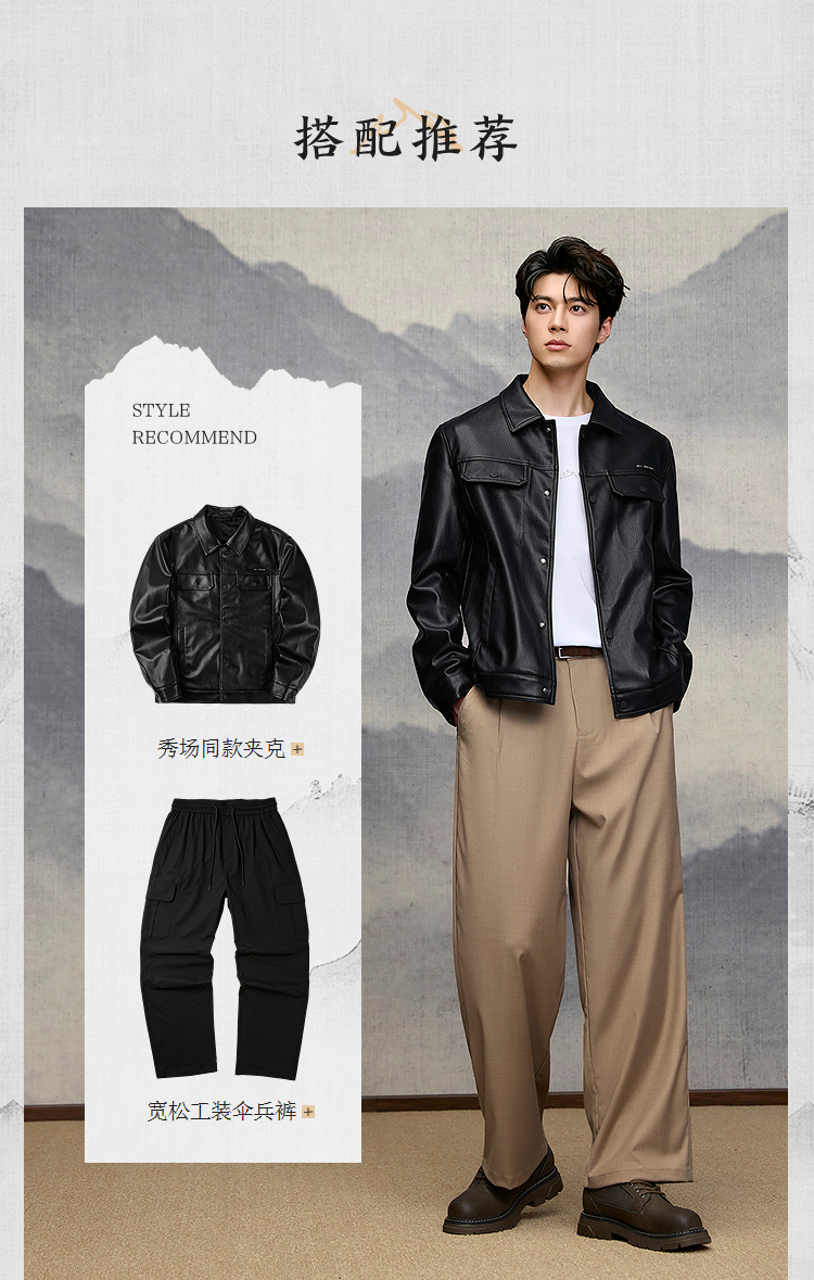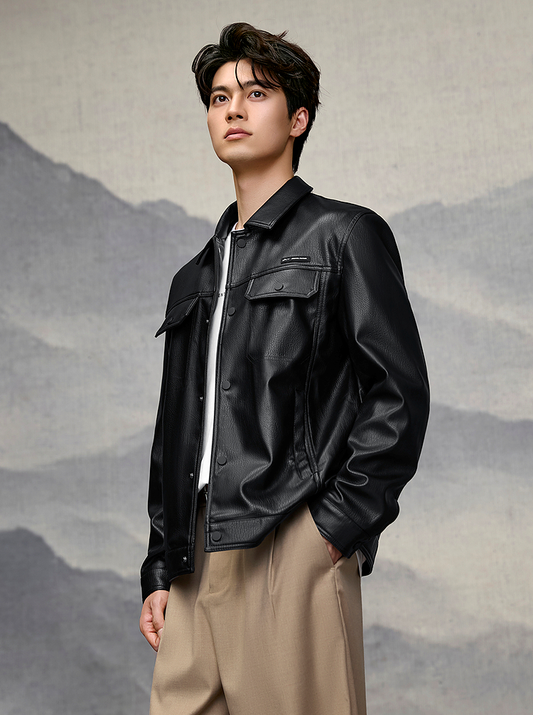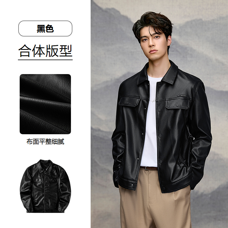 已选:HLA海澜之家山不在高系列夹克26春秋新干练时尚翻领pu皮衣外套男HWJAW1F005A
