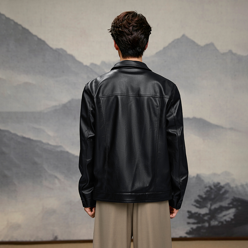 HLA海澜之家山不在高系列夹克26春秋新干练时尚翻领pu皮衣外套男HWJAW1F005A
