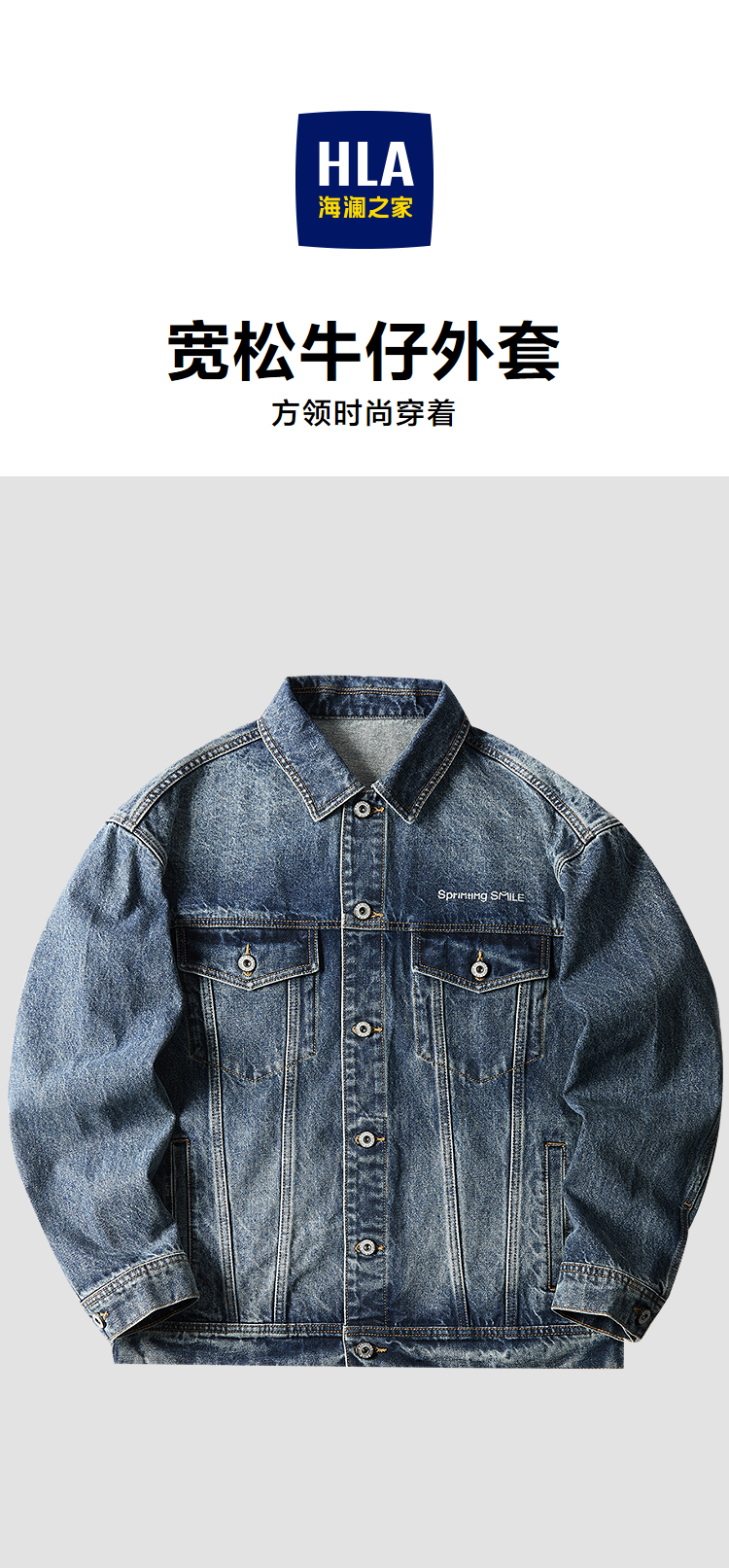 已选:HLA海澜之家SPRINTING SMILE系列牛仔外套26春夏新宽松外套男HWNAW1F002A