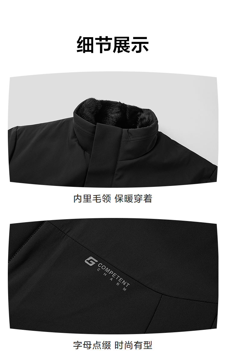 已选:HLA海澜之家水貂毛皮毛领羽绒服25秋冬立领纯色休闲保暖鹅绒服男HWRAD4J206A