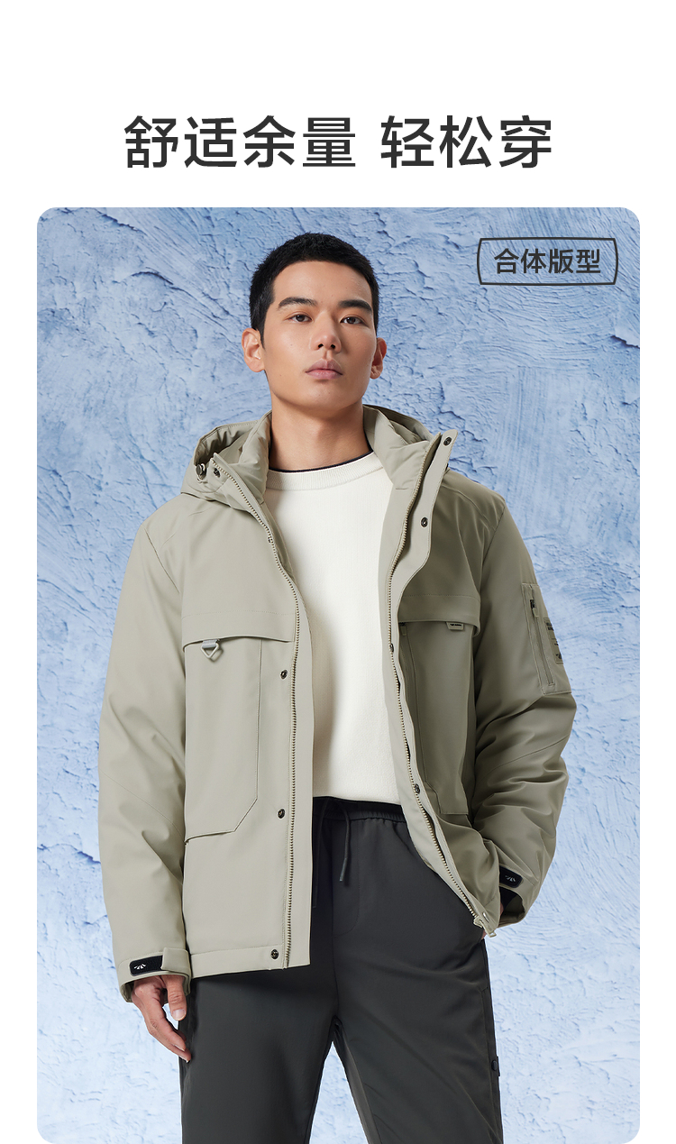 HLA海澜之家极光系列羽绒服2024秋冬新款保暖三防科技蓬松外套男HWRAJ4W093A
