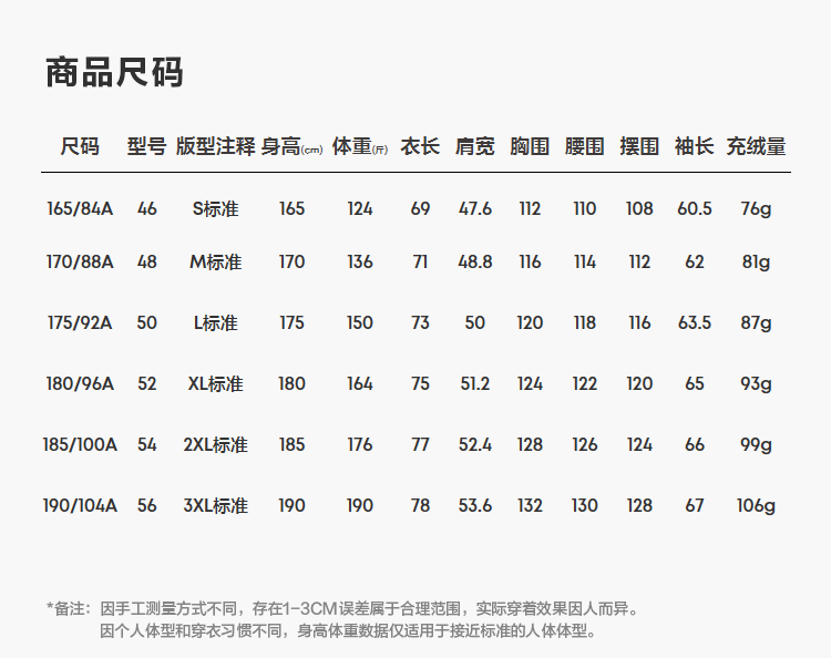 尺码颜色