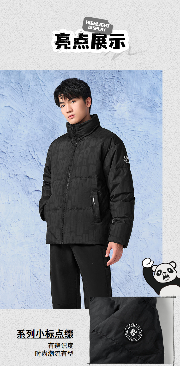 HLA海澜之家panda wowo熊猫保暖羽绒服25秋冬新石墨烯立领外套男HWRAW4J086A