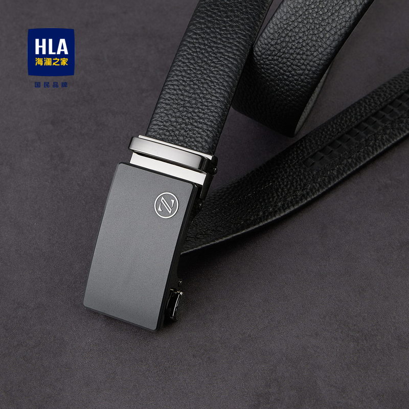 已选:HLA海澜之家商务大气自动扣皮带2024新简约压花牛皮革质感腰带男HZPAD1W007A