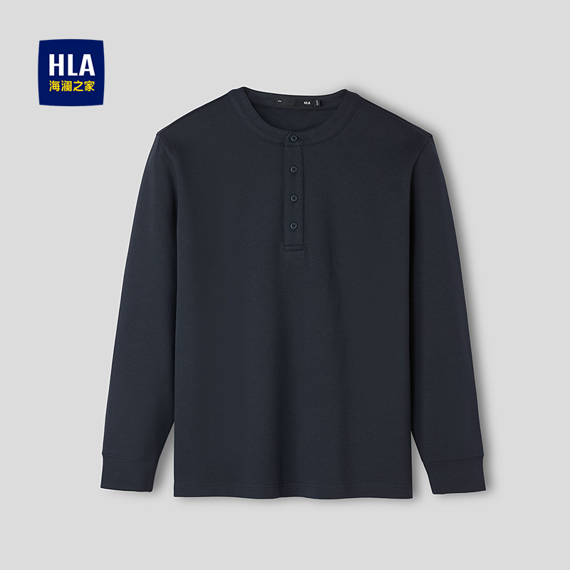 HLA海澜之家轻商务长袖T恤26春夏新款圆领纯色简约休闲打底衫男HNTAW1F016A ¥198.00